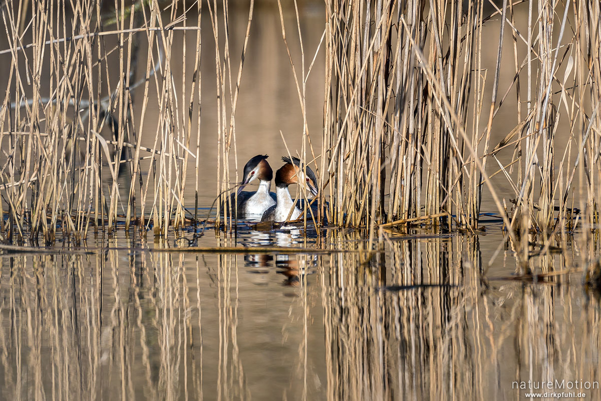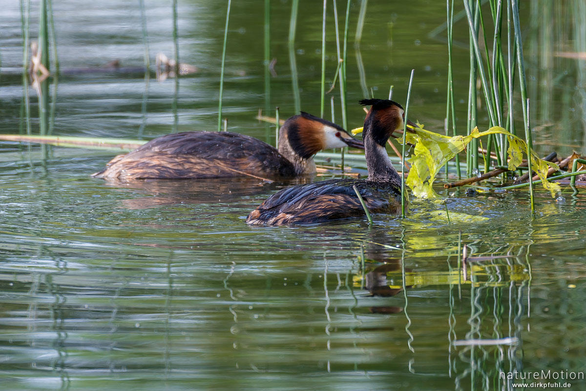 Haubentaucher, Podiceps cristatus, Podicipedidae, Paar baut ...