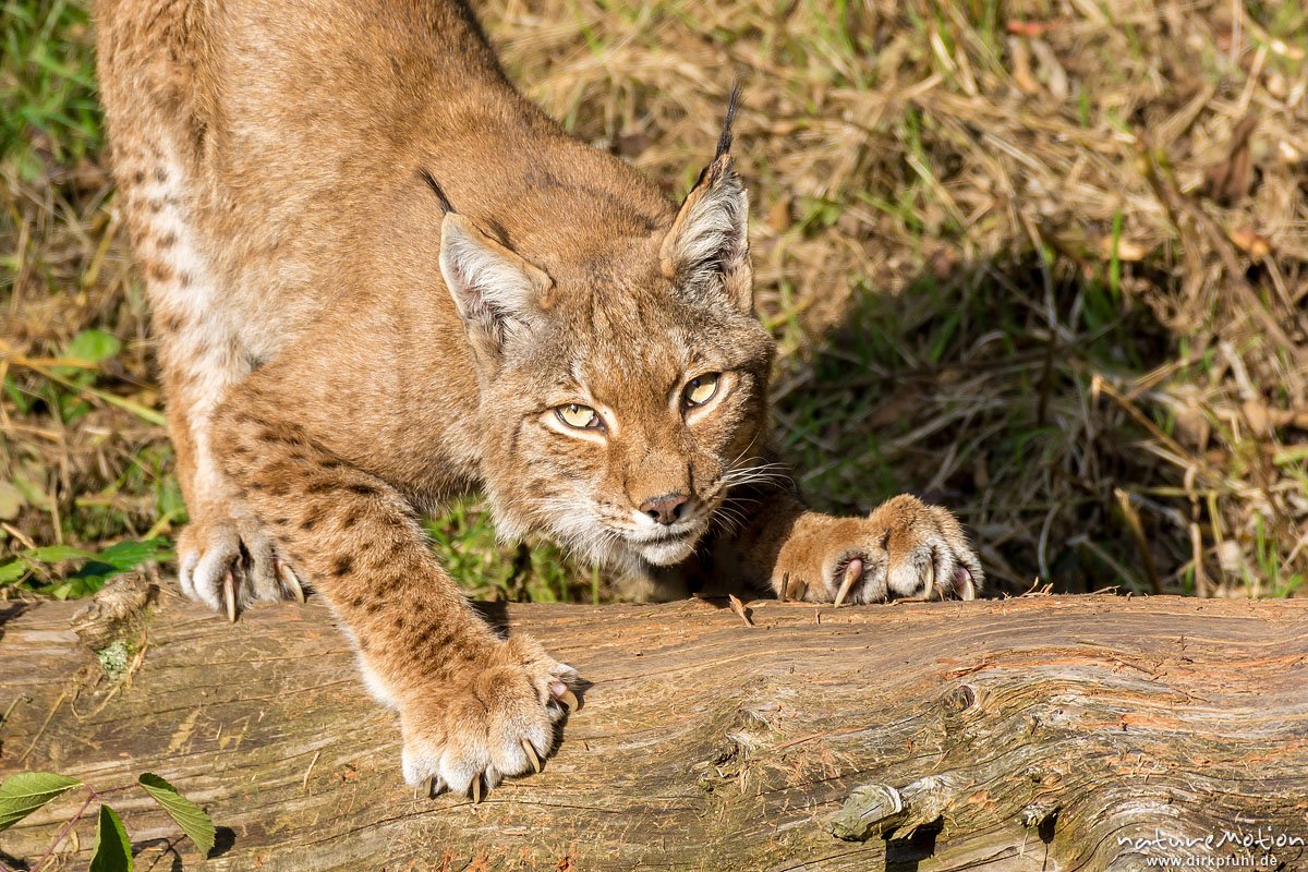 Luchs, Lynx lynx, Felidae, Tier streckt sich und wetzt Krall ...