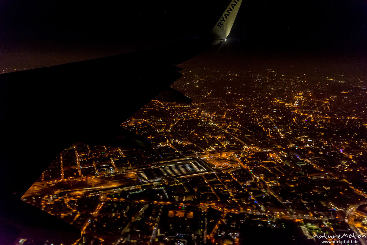 Flug über das nächtliche Rom, Lichtermeer, Landeanflug, Ro ...