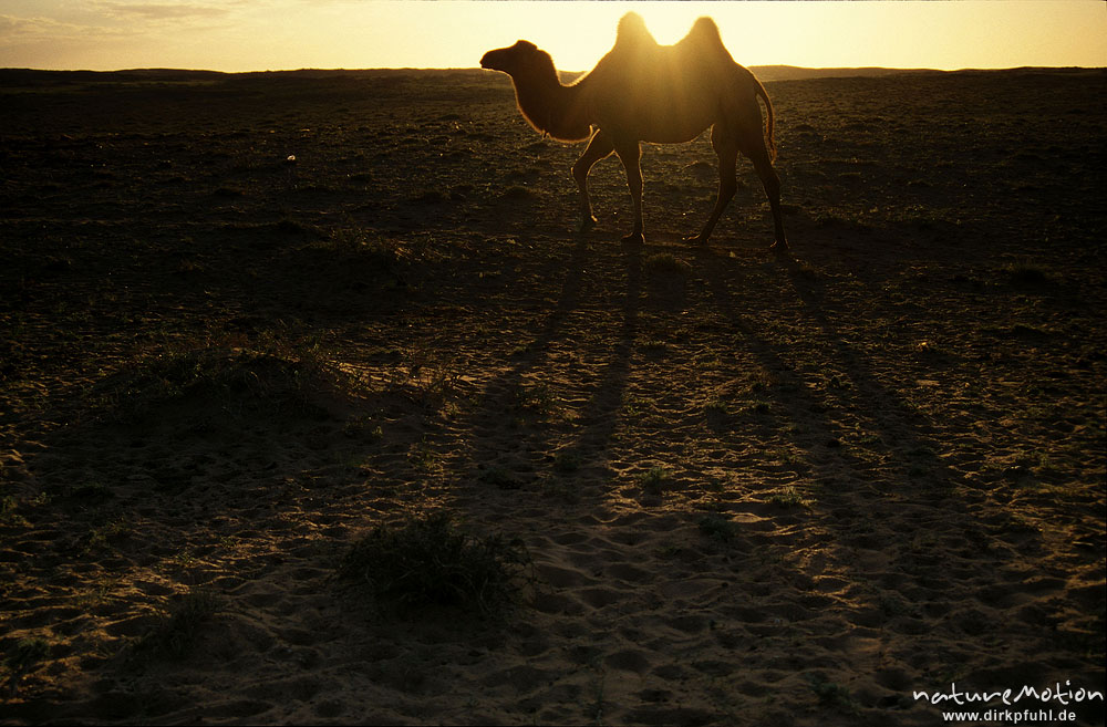 Sonnenuntergang, angeleinte Pferde, Wüste Gobi, Mongolei ...