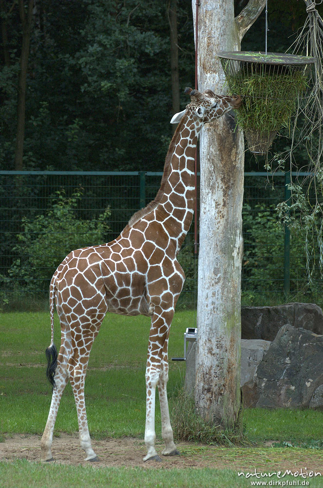 Giraffe, Giraffa camelopardalis, Jugtier beim fressen, Zoo, ...