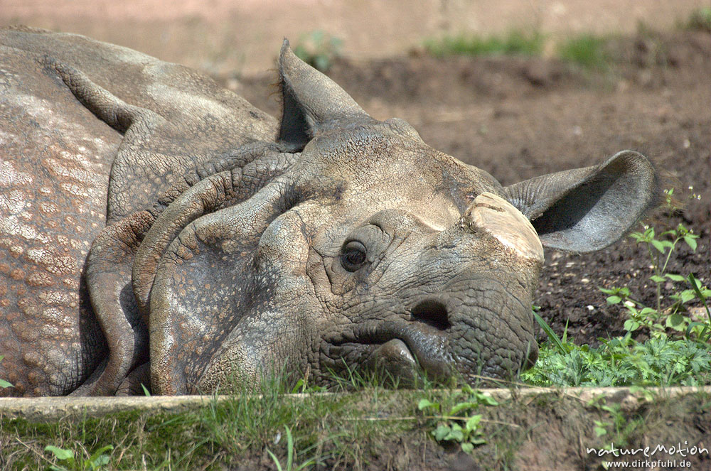 Indisches Panzernashorn, Rhinoceros unicornis, Tier mit abge ...