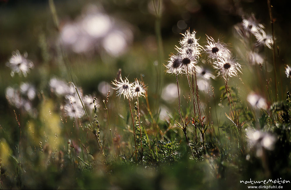 Hahnenfuß, Fruchtstände im Gegenlicht, Bergland, , ...