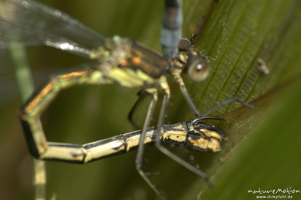 Gemeine Binsenjungfer, Lestes sponsa, Weibchen Männchen, Ei ...