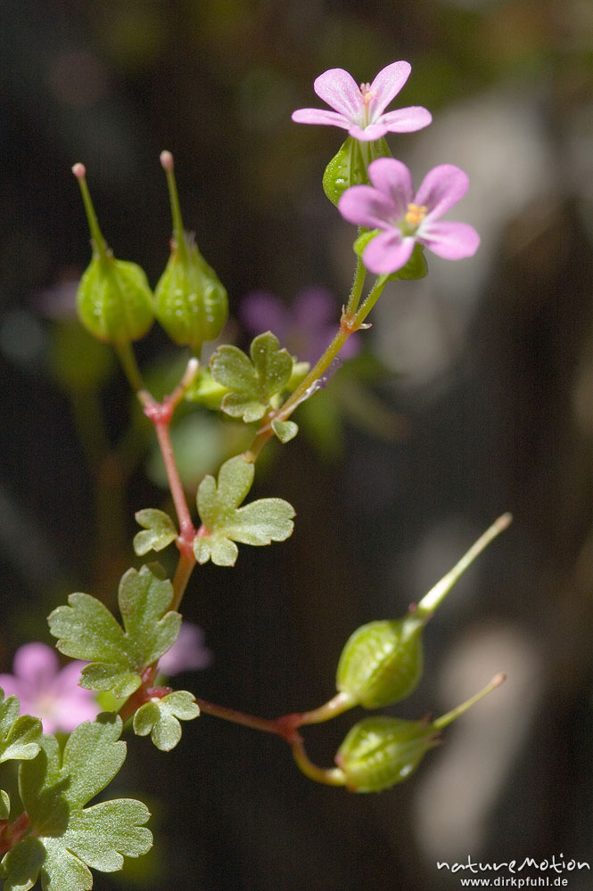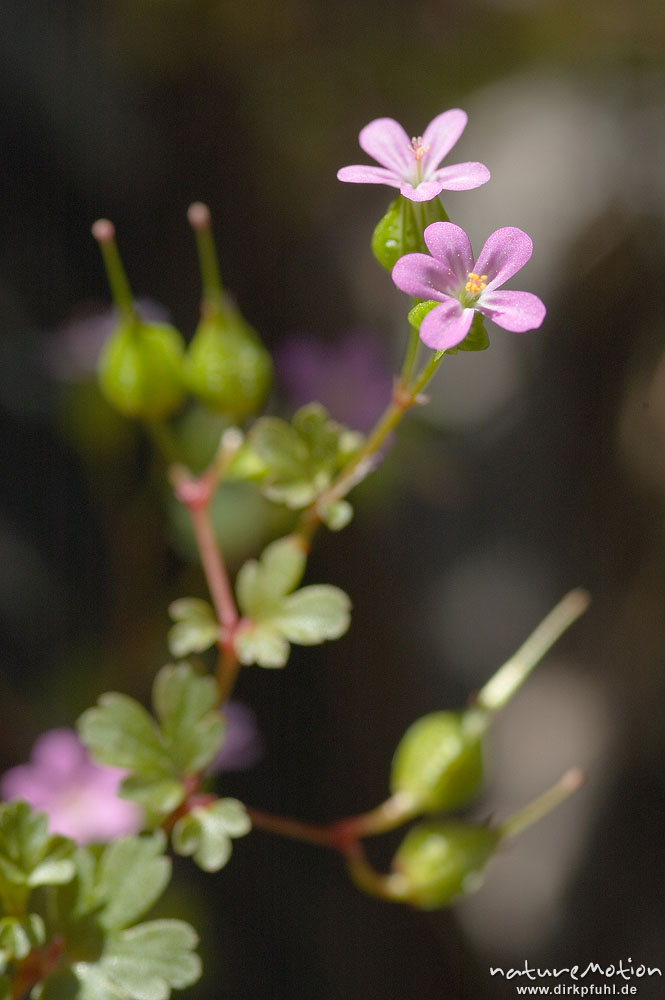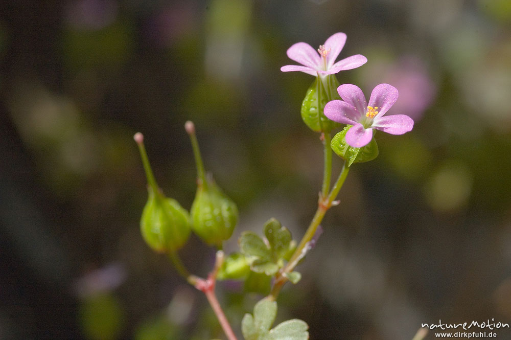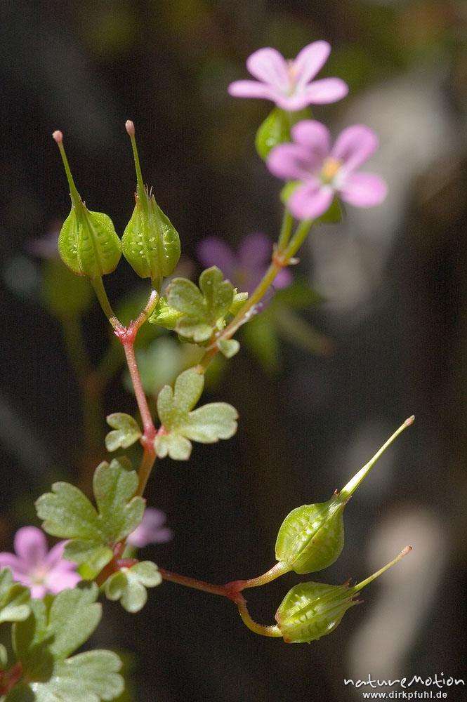 Glänzender Storchschnabel, Geranium lucidum, Blüten, Früc ...