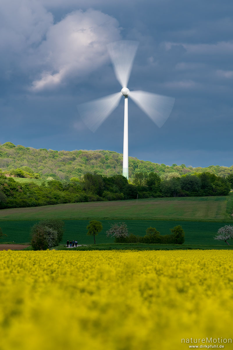 Windrad und blühendes Rapsfeld, Diemardener Warte, Götting ...