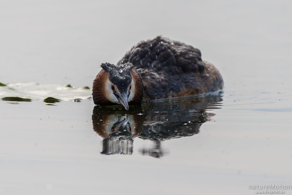 Haubentaucher, Podiceps cristatus, Podicipedidae, liegt auf ...