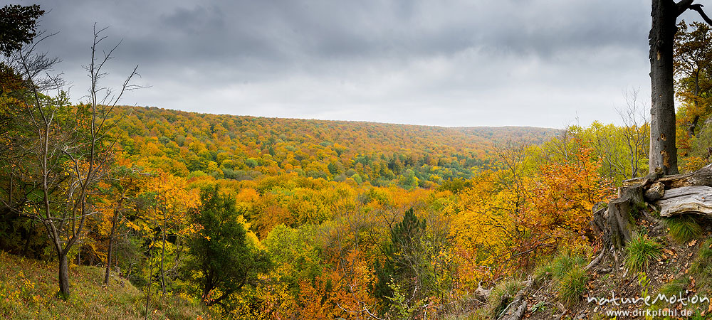 Herbstwald, Blick von den Kalksteinklippen der Ratsburg, Rey ...