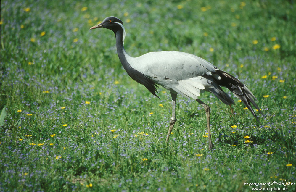 Kranich, Grus grus, auf Wiese, Tierpark Sababurg, Rheinhards ...