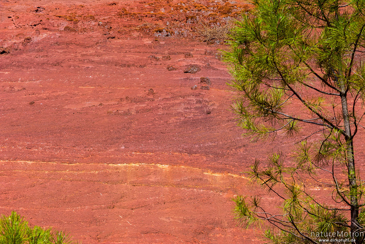 Ockersteinbruch, Felsen und Sand in verschiedenen Rot, Braun ...
