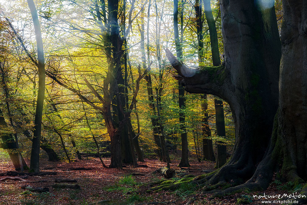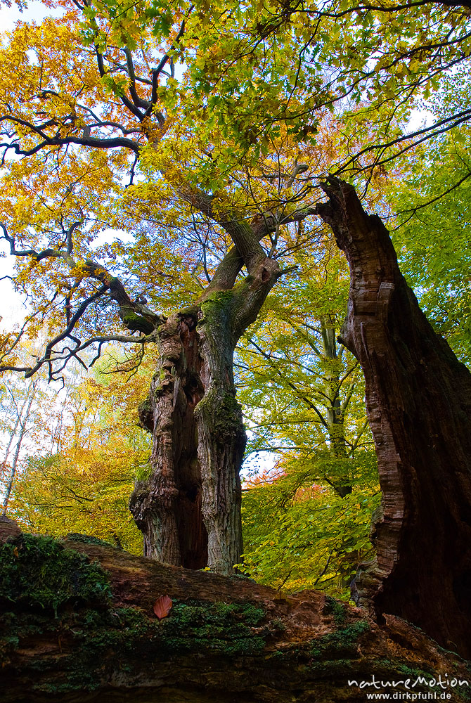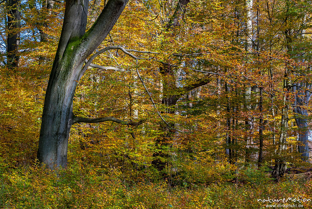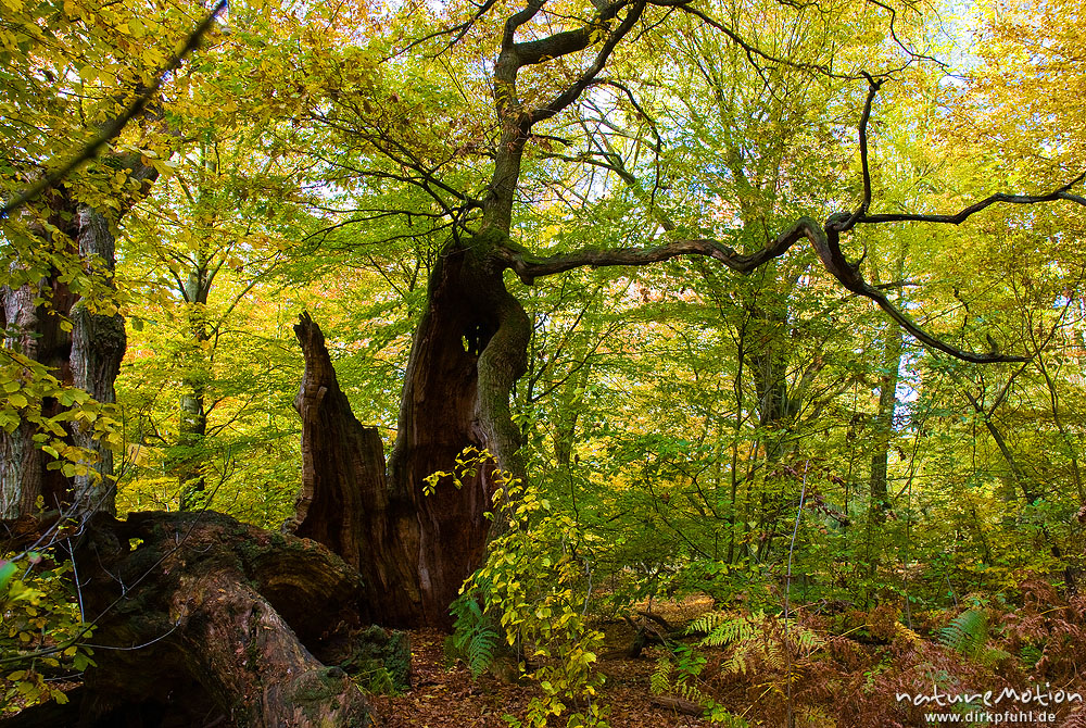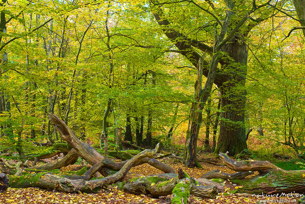 Buchenwald mit Herbstfärbung, ehemaliger Hutewald, alte Eic ...