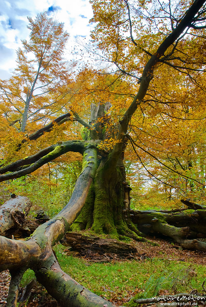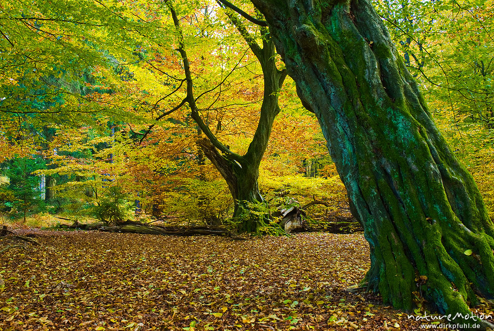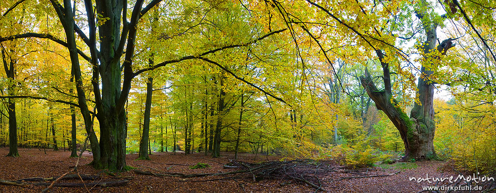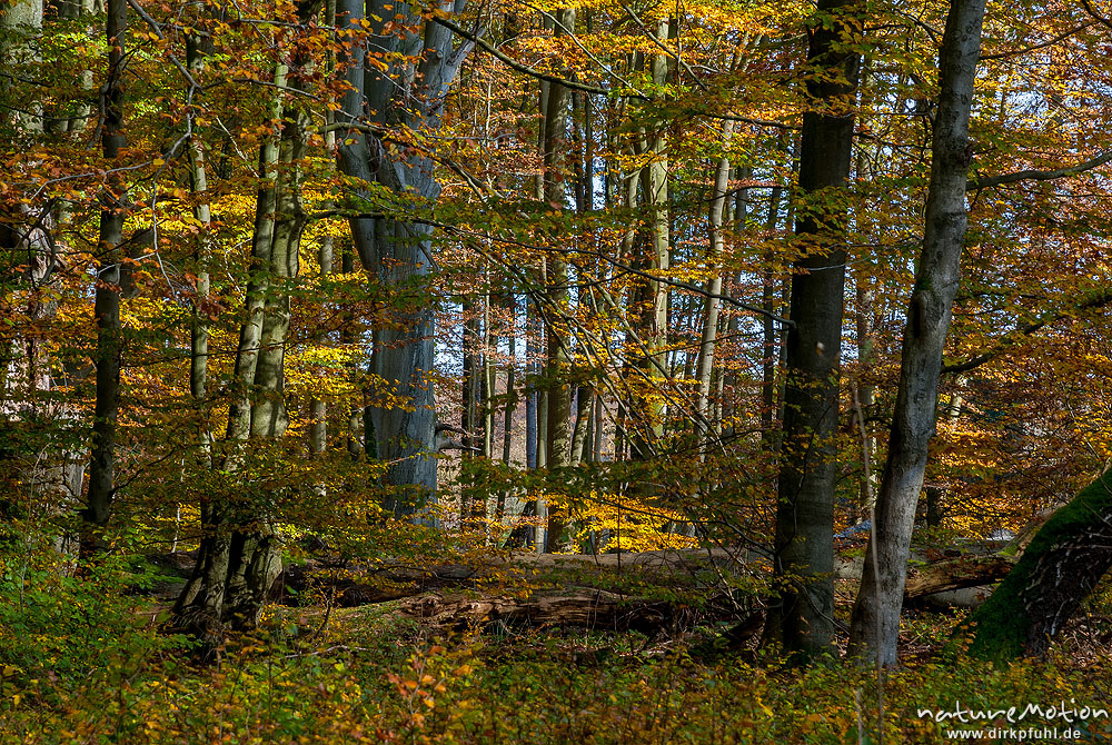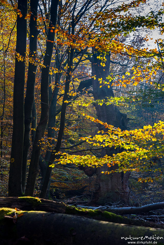 Buchenwald mit Herbstfärbung, ehemaliger Hutewald, alte Eic ...