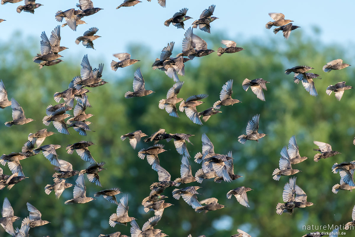 Star, Sturnus vulgaris, Sturnidae, Schwarm, Tiere beim gemei ...