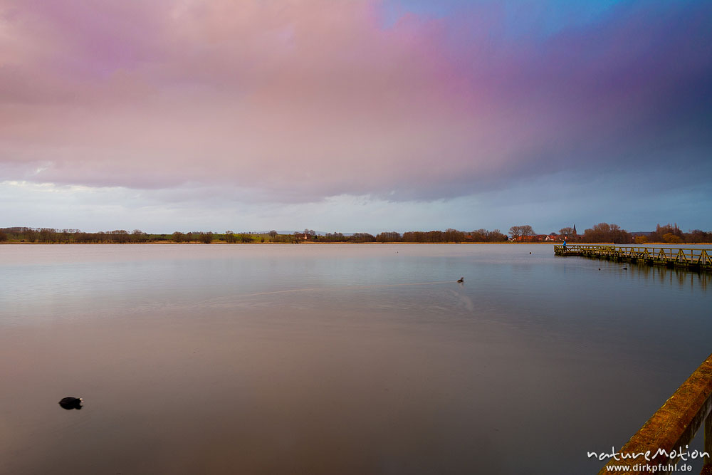 zugefrorener See im Abendlicht, Steg, Seeburger See, Seeburg ...