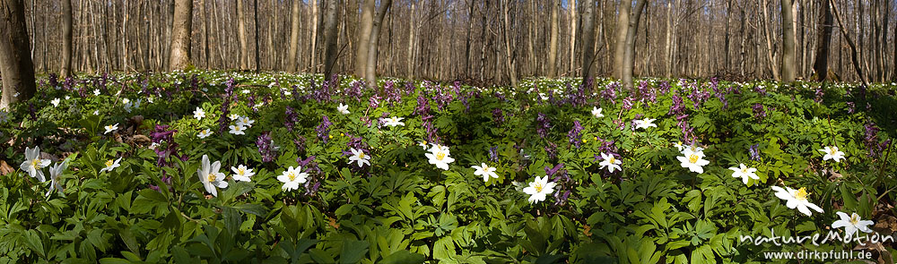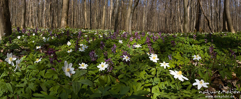 Buchenwald im Frühling, Waldboden bedeckt mit Buschwindrös ...