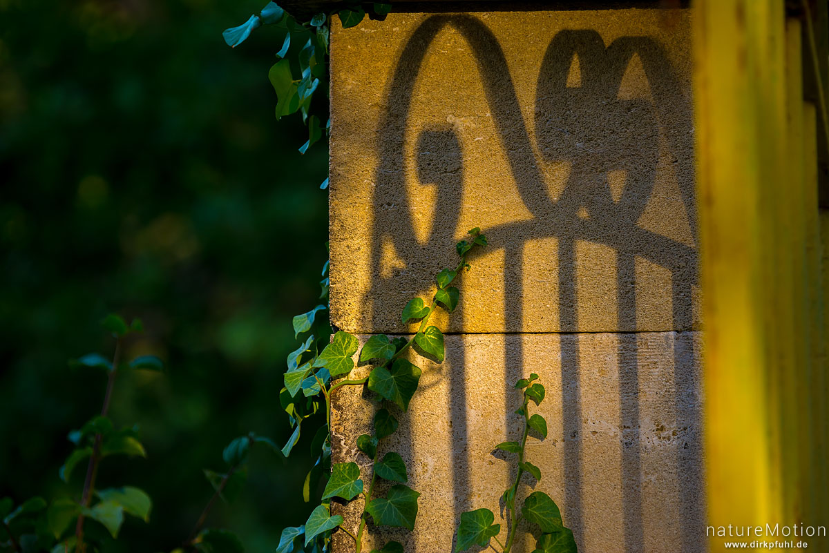 Weg, Schatten eines gusseisernen Tores auf dem Torpfosten, S ...