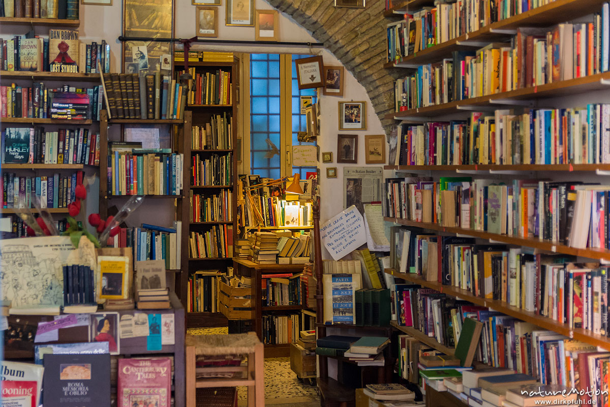 Buchladen, Strassen und Häuserzeilen im Viertel Trastevere, ...