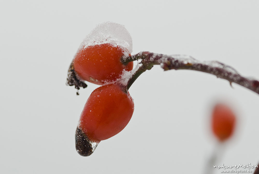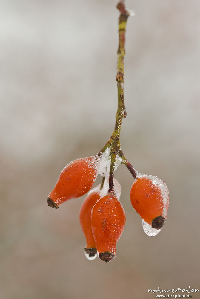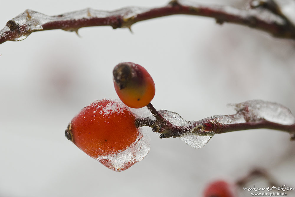 Hagebutte mit Eisüberzug, vereiste Frucht, Hunds-Rose, Rosa ...