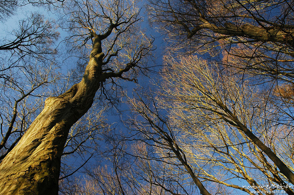 Buchenlaub gegen blauen Himmel, Göttinger Wald, Göttingen, ...
