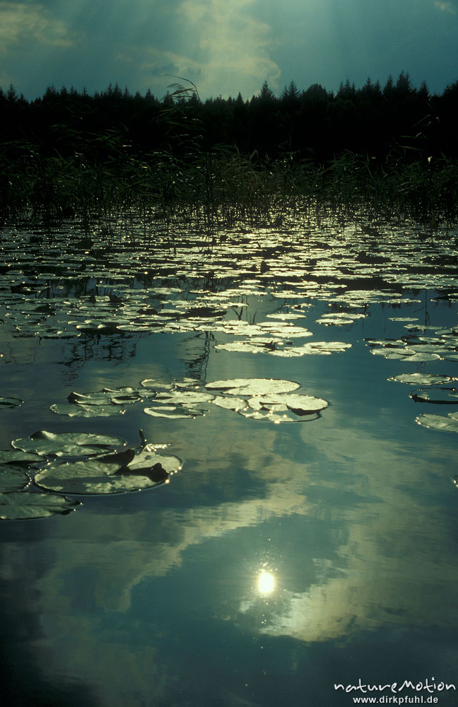 Seerosenblätter, Nymphaea alba, See, Himmel spiegelt sich a ...