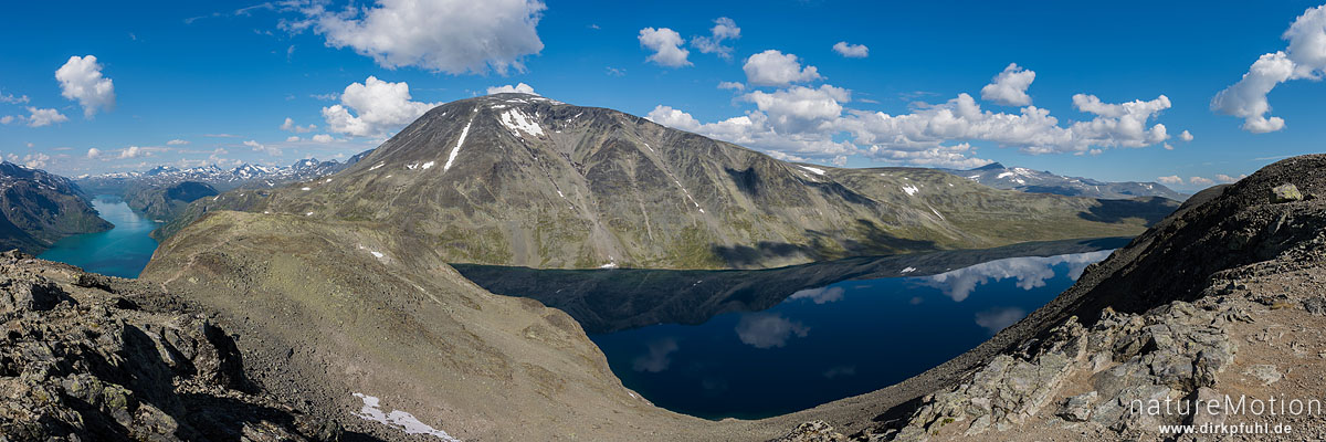 Gjendesee, Besshoe und Bessvatnet, Wolken spiegeln sich in d ...