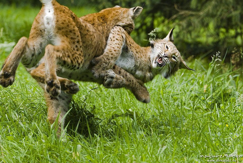 Luchs, Lynx lynx, Felidae, zwei Alttiere beim balgen, Moment ...