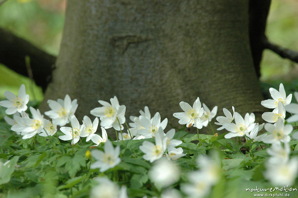 Frühlingswald, Buchenstämme und Buschwindröschen, Anemone ...