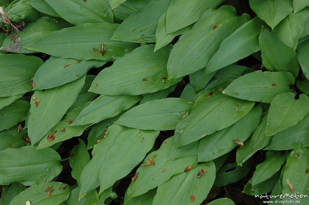Bärlauch, Allium ursinum, Blätter mit herabgefallenen Knos ...