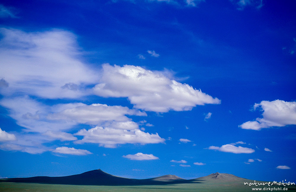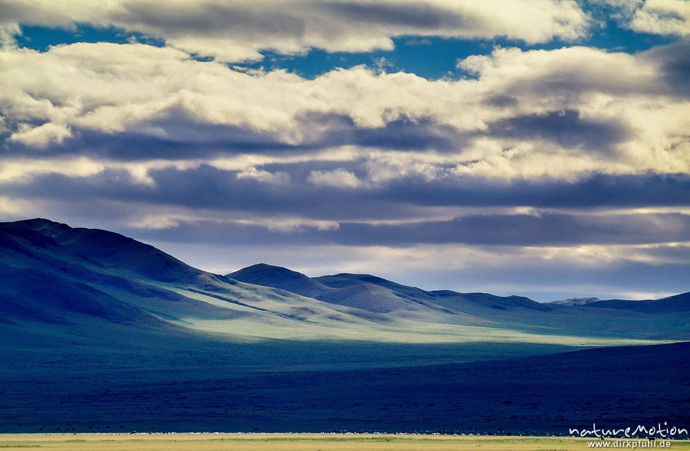 Steppe mit Höhenzügen, bewölkter Himmel, Wolkenschatten, ...