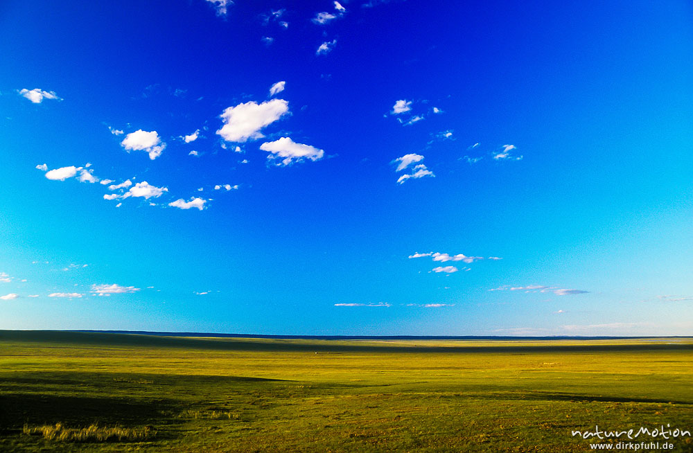 flache weite Steppe, blauer Himmel, Übergangszone zur Gobi, ...