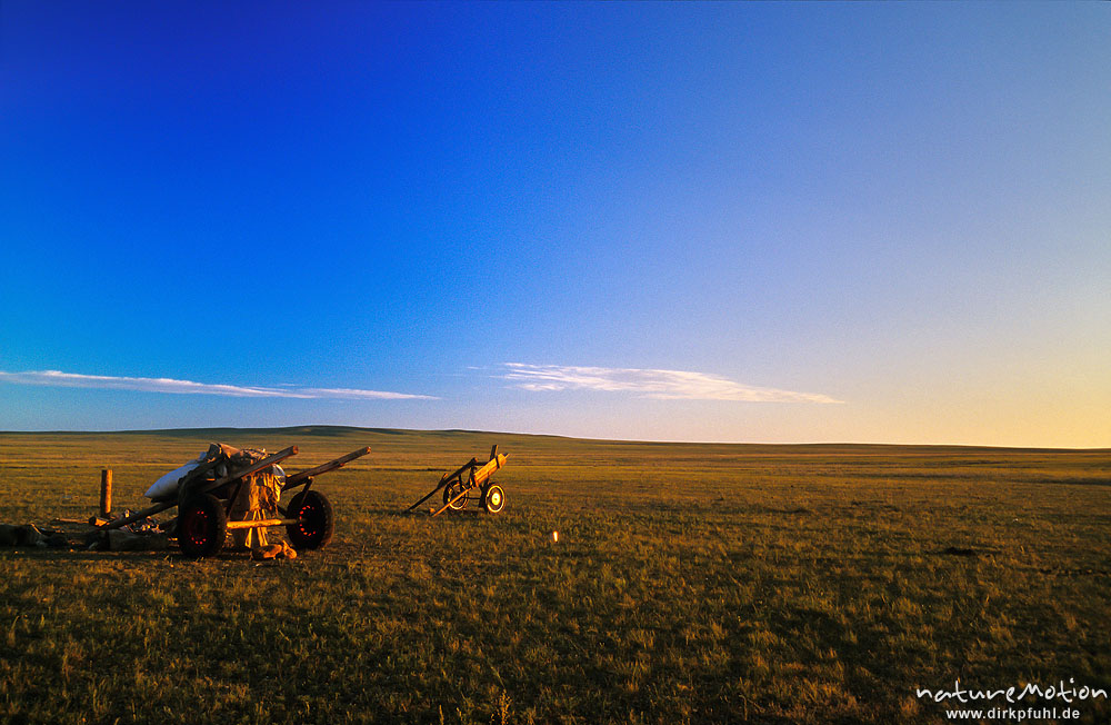 zweirädrige Pfedekarren im Abendlicht, , ...