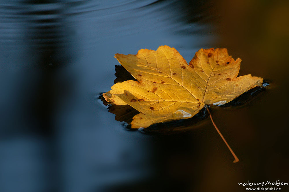 Buchenblätter, schwimmend auf Wasseroberfläche, Schillerwi ...