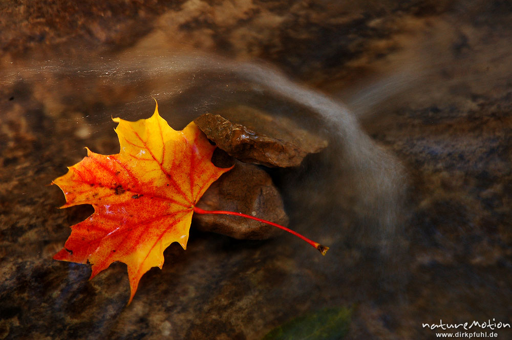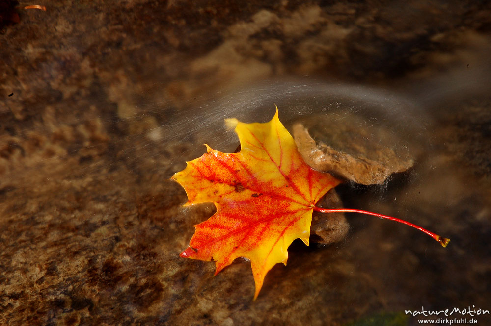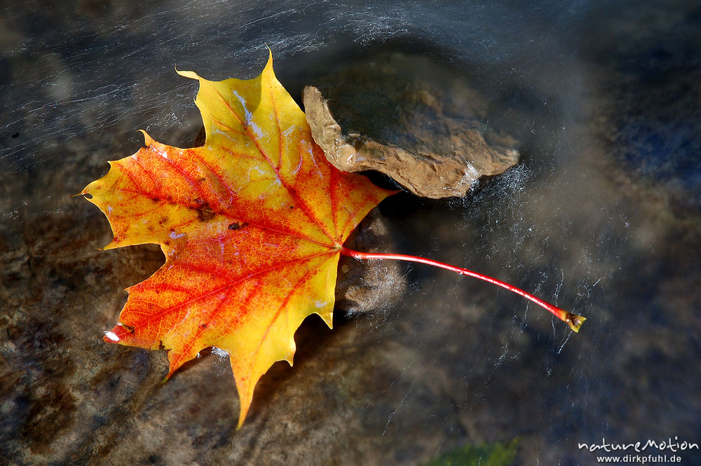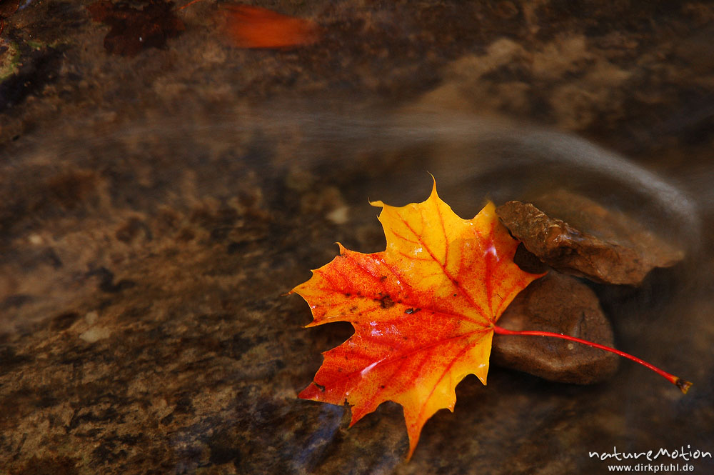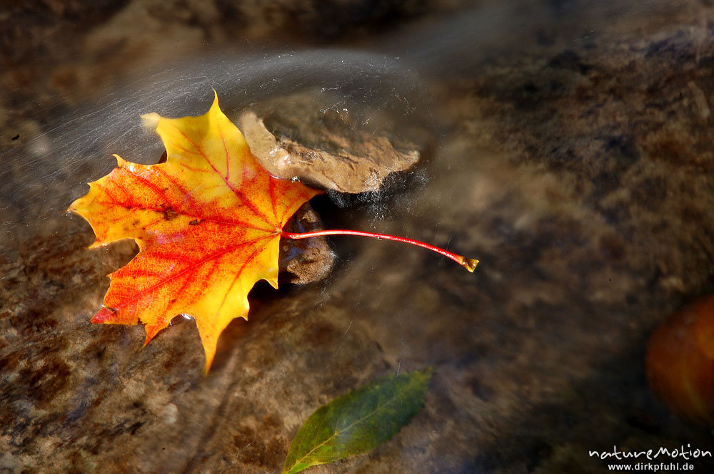 Spitzahornblatt in fließendem Wasser, Schillerwiese, Götti ...