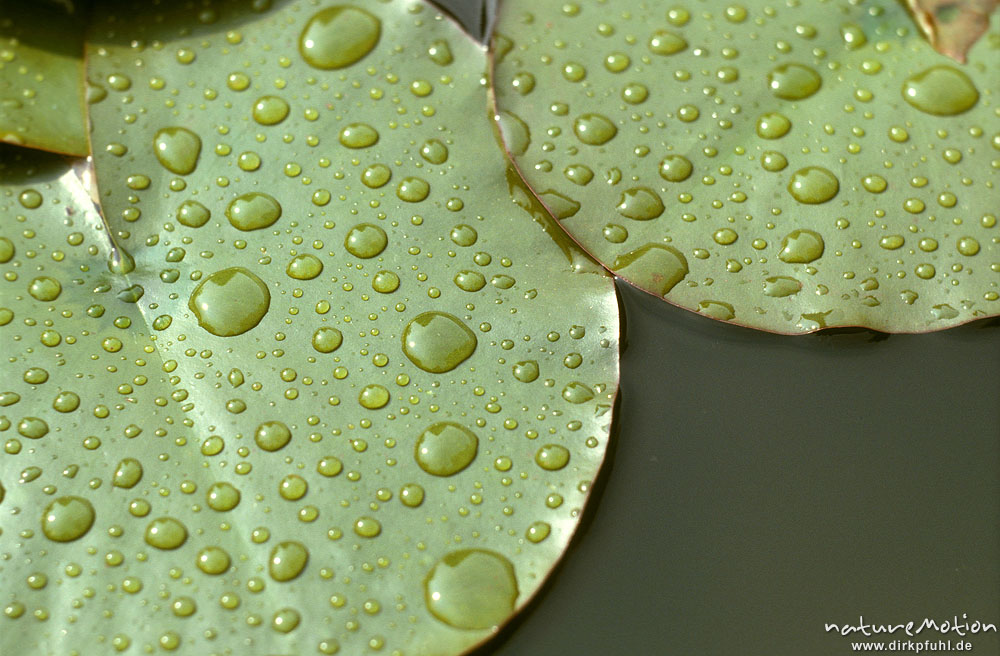 Seerose, Nymphaea alba, Nymphaeaceae, Blätter mit Regentrop ...