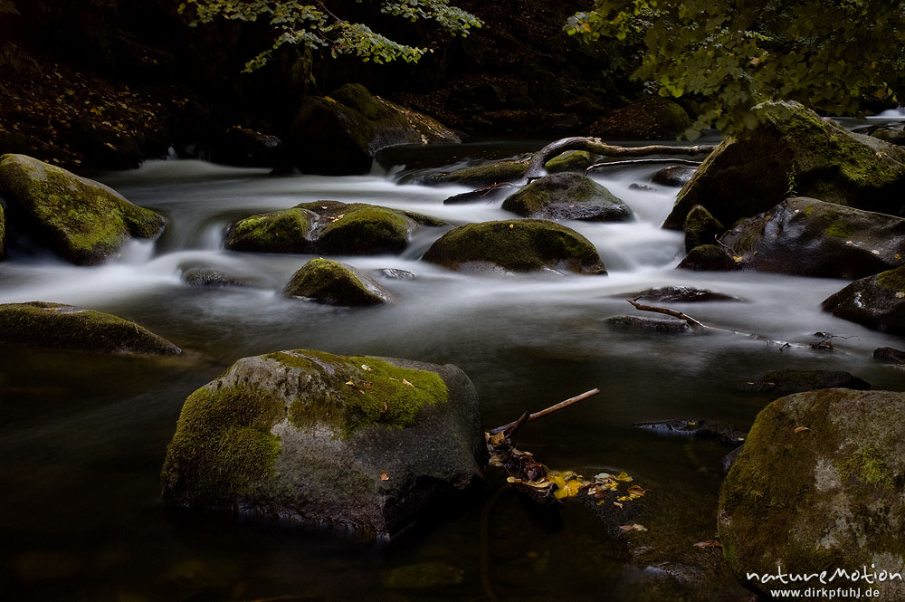 fließendes Wasser, moosbewachsene Steine, Bergbach, Bodetal ...