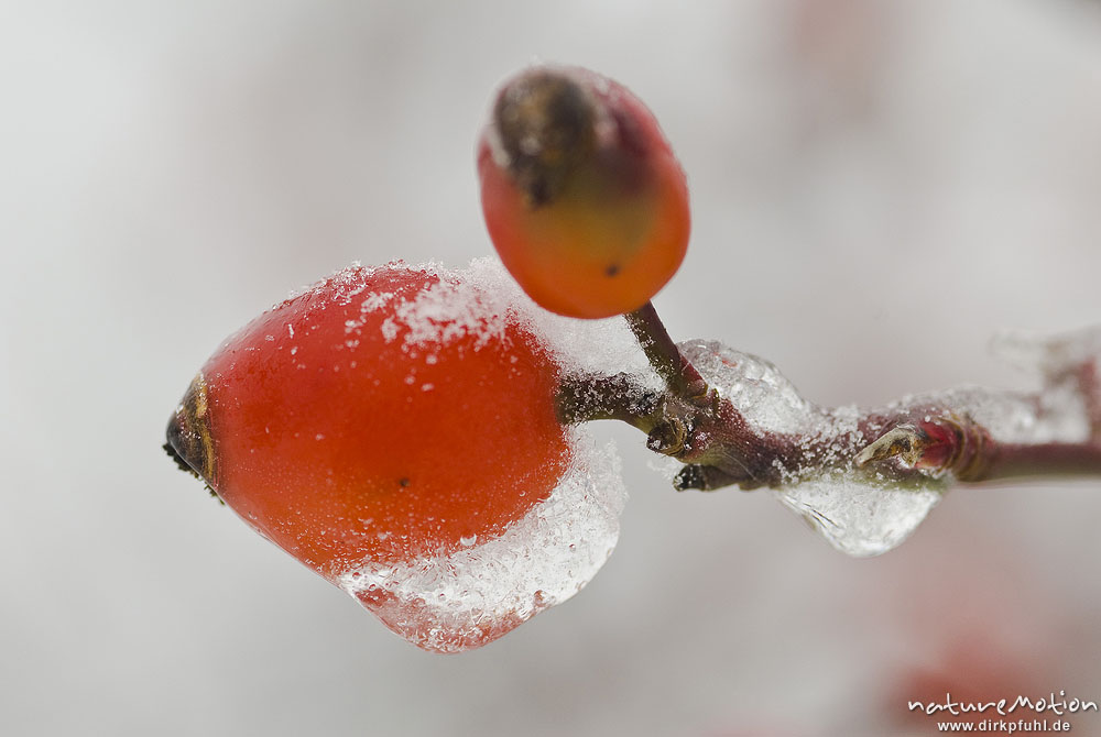 Hagebutte mit Eisüberzug, vereiste Frucht, Hunds-Rose, Rosa ...