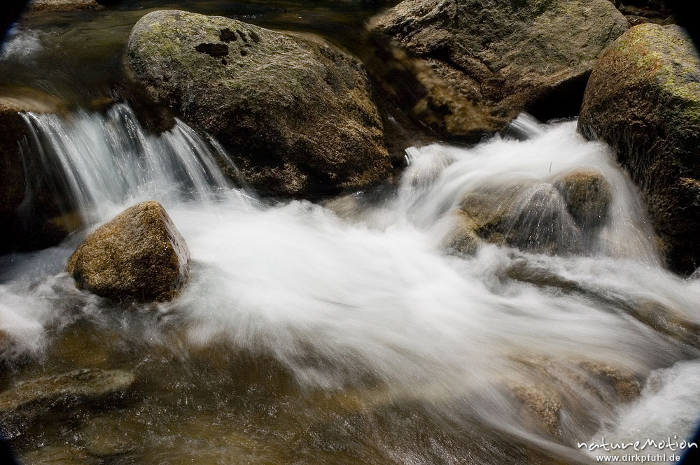 Gebirgsbach mit Wasserfällen und Felsen, Oso-Bach, Piscia d ...