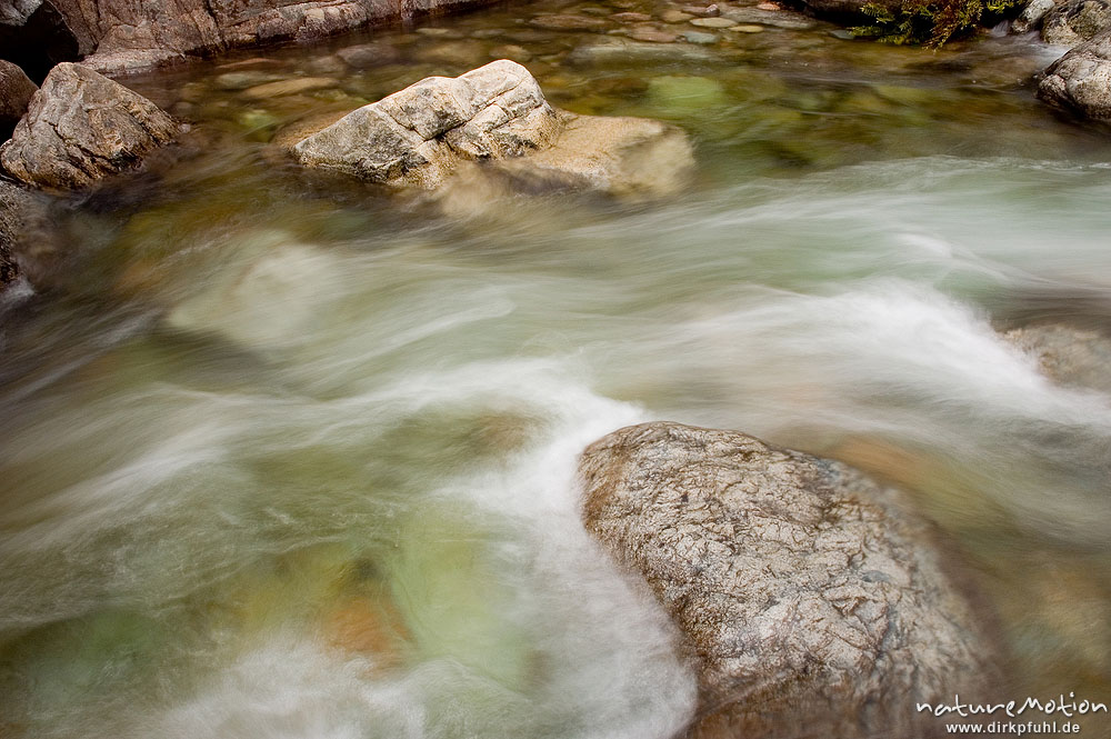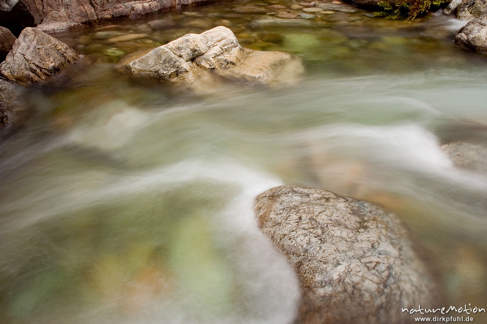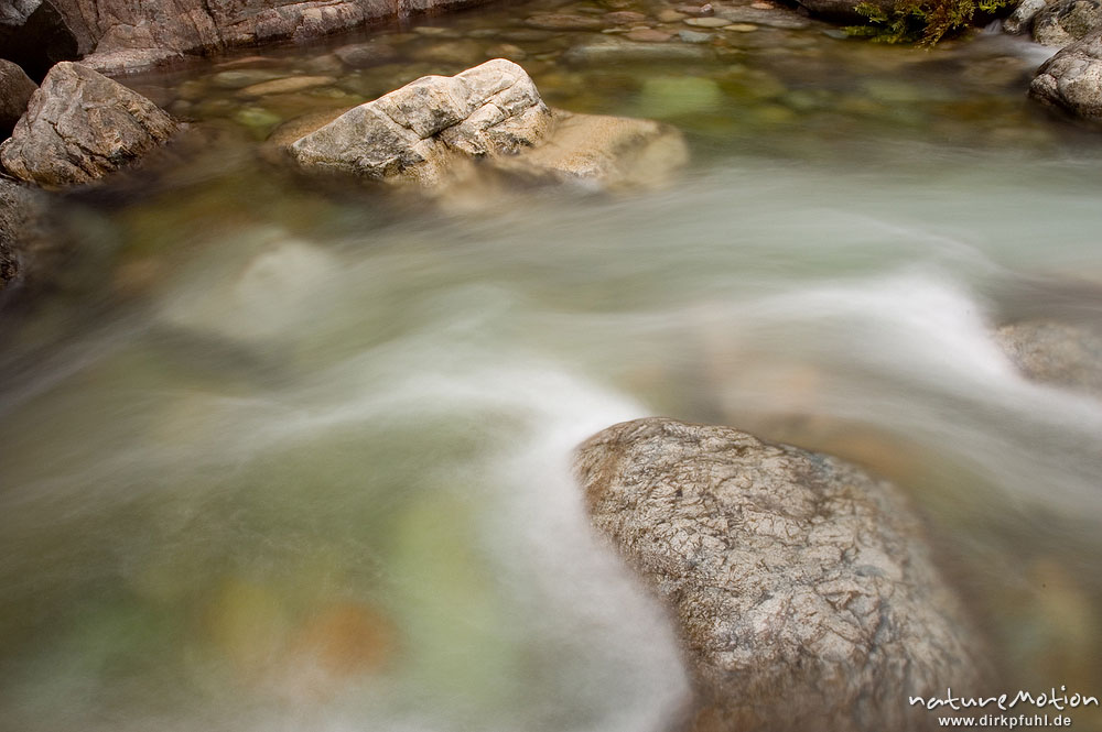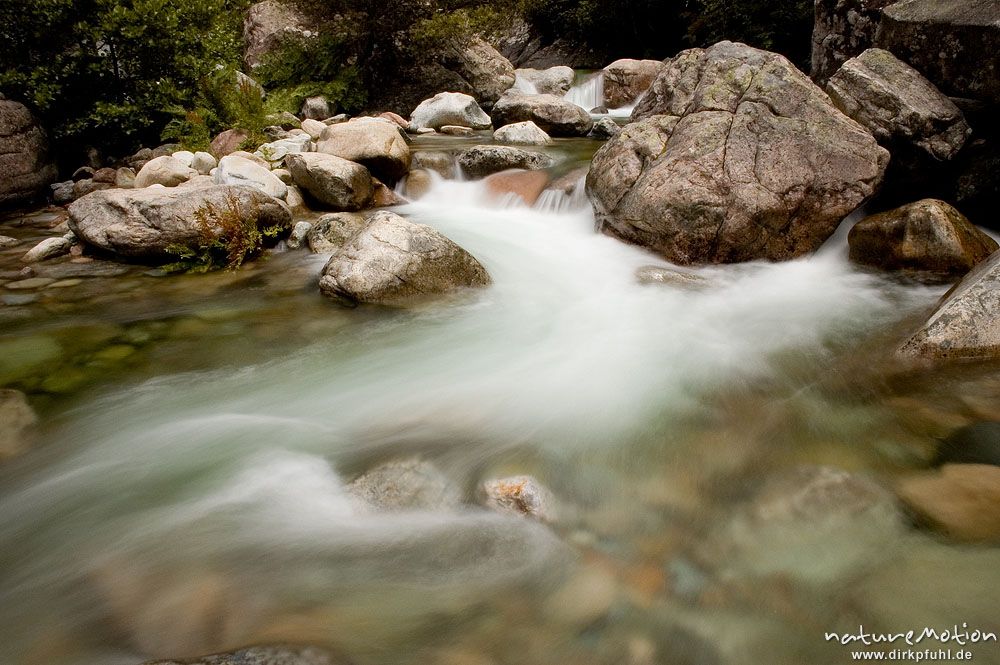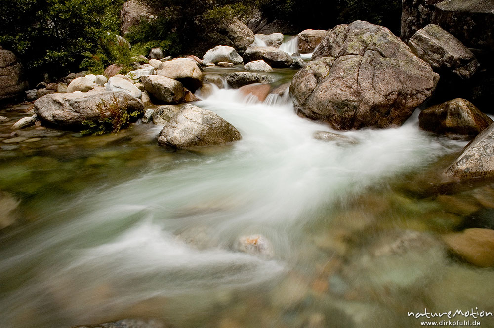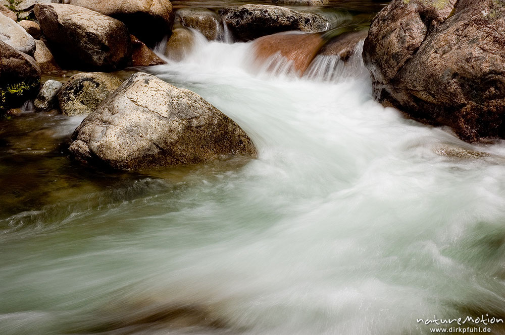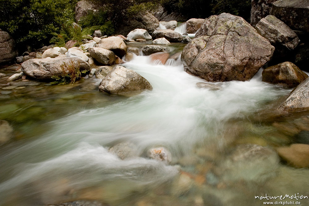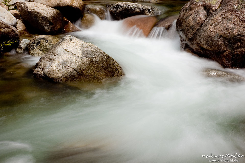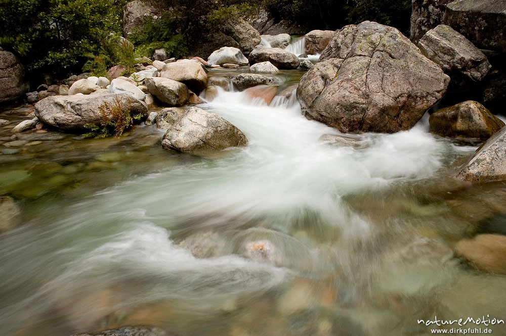 Strömung, Gebirgsbach mit Stufe, Gorche de Spelunca, Korsik ...