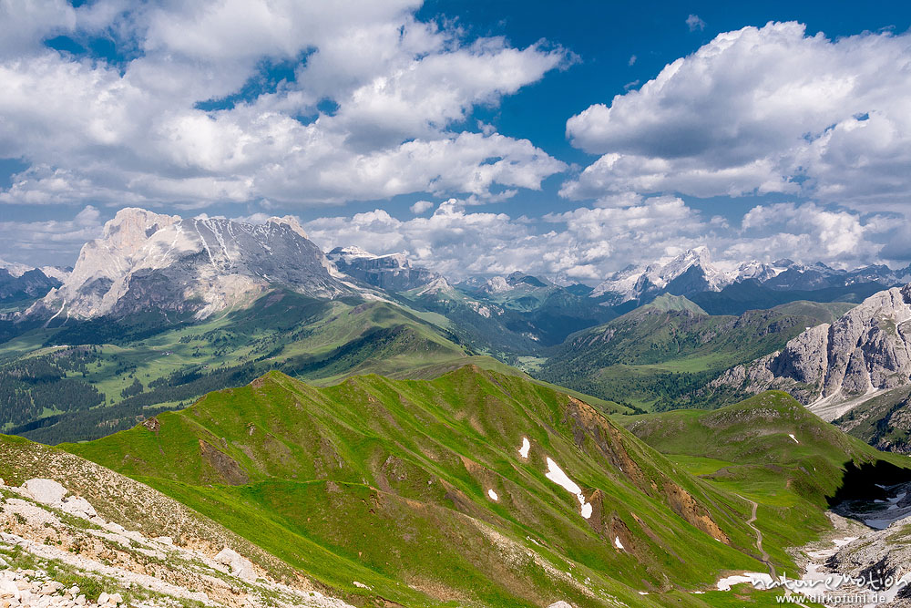 Geisslergruppe, Langkofel, Plattkofel, Sella, Wanderweg zwis ...
