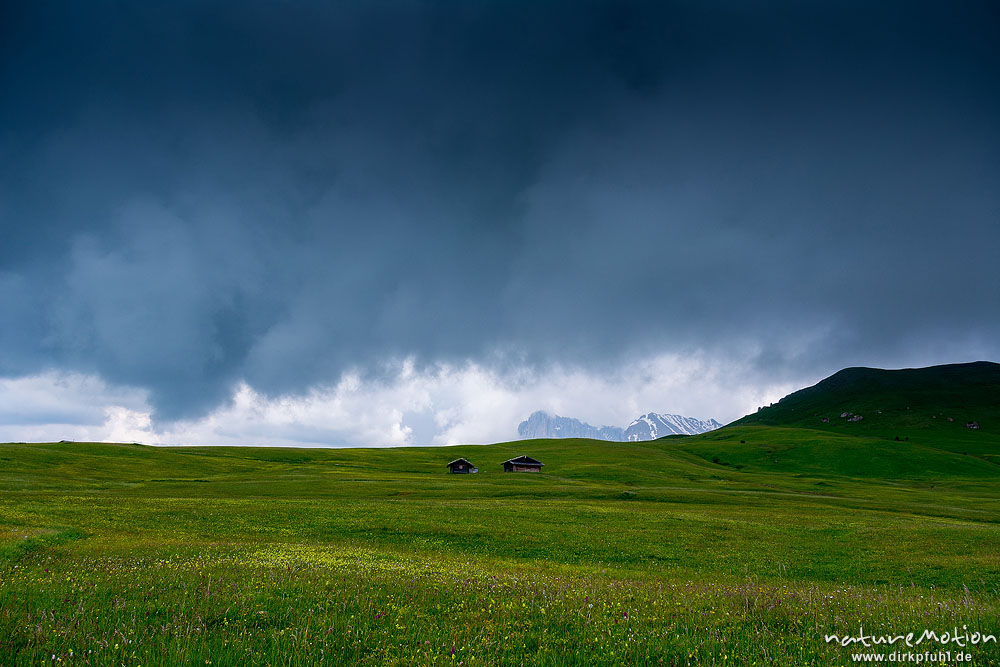 Gewitterwolken, Hütten und Almwiesen, Geisslergruppe, Seise ...