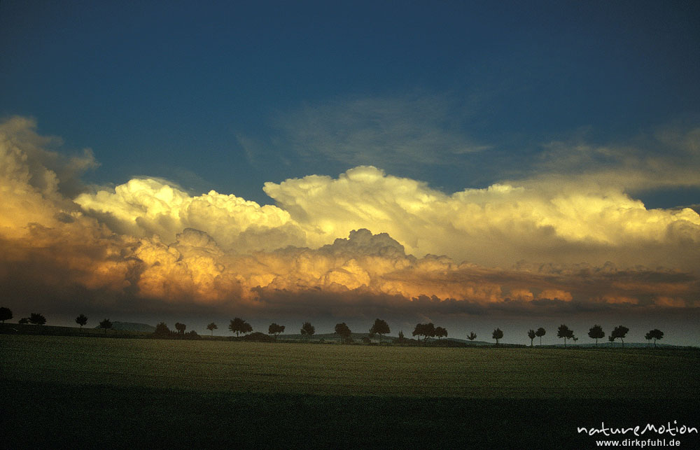 Gewitterwolken im Abendrot, aus fahrendem Zug fotografiert, ...
