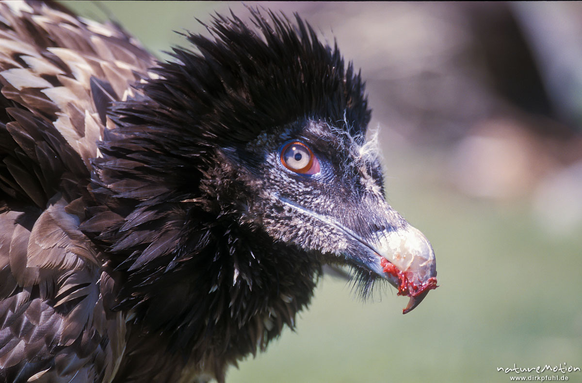 Bartgeier, Gypaetus barbatus, Accipitridae, Kopf eines Jungt ...
