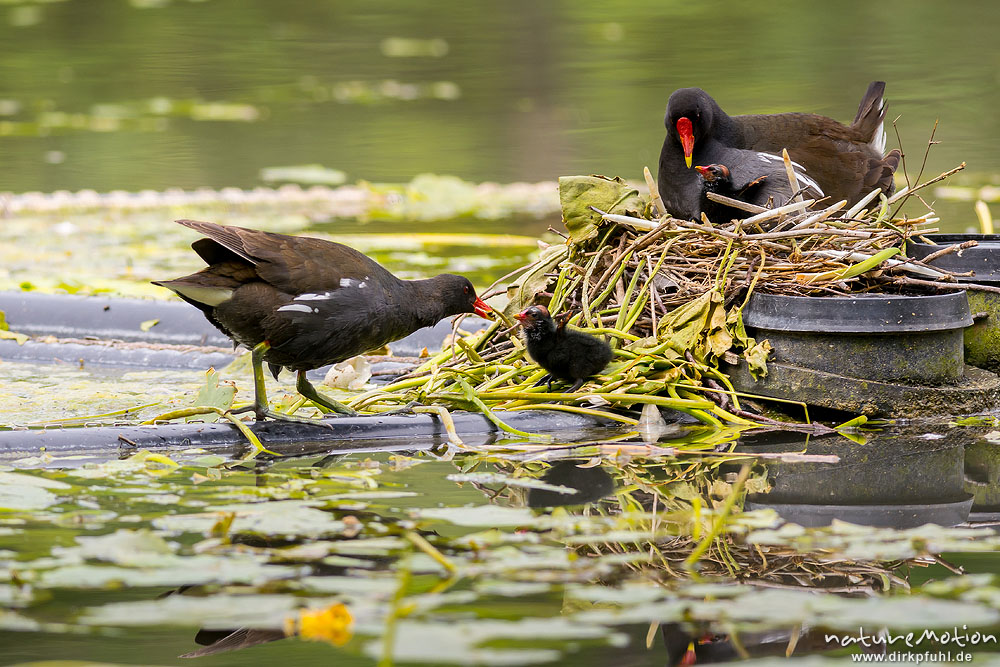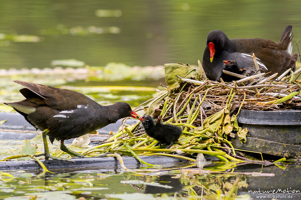 Teichralle, Teichhuhn, Gallinula chloropus, Rallenvögel (Ra ...