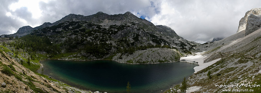 Bergtal mit See und Wanderweg, Ledvica jezero (Großer See), ...