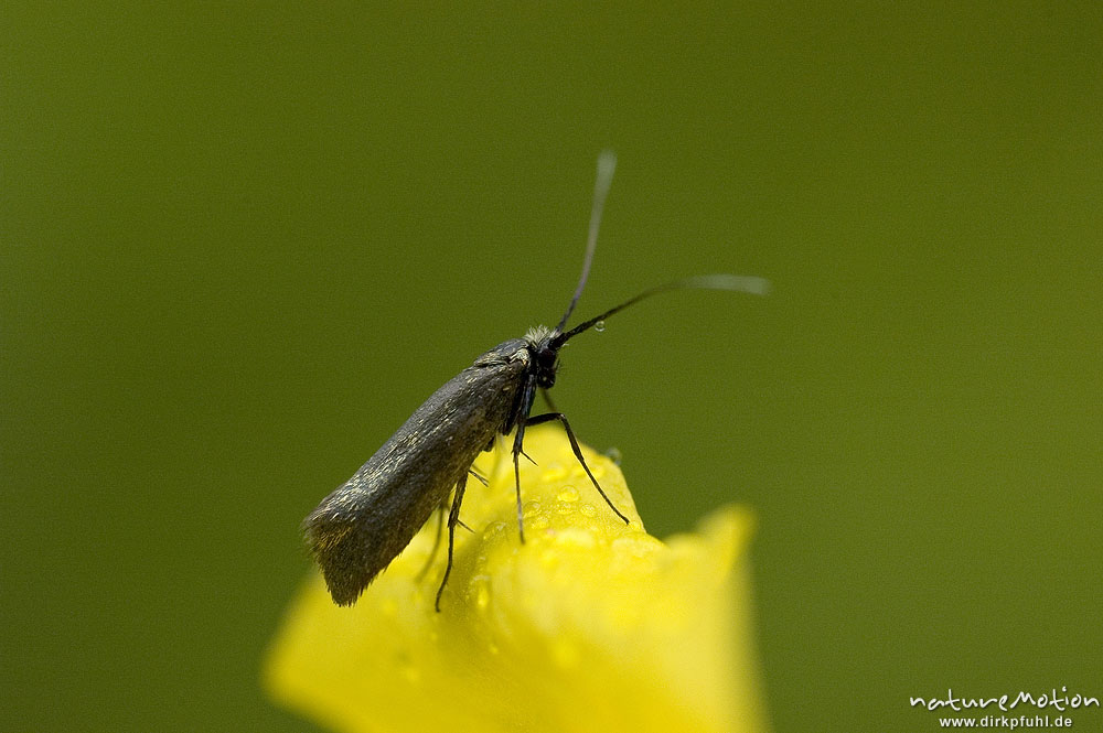 Motte, Kleinschmetterling, mit Regentropfen, auf Gelbem Mohn ...
