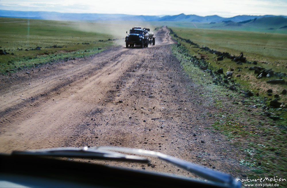 Schotterpiste vom Beifahrersitz aus, Gegenverkehr, , ...