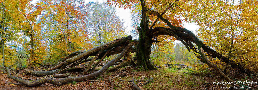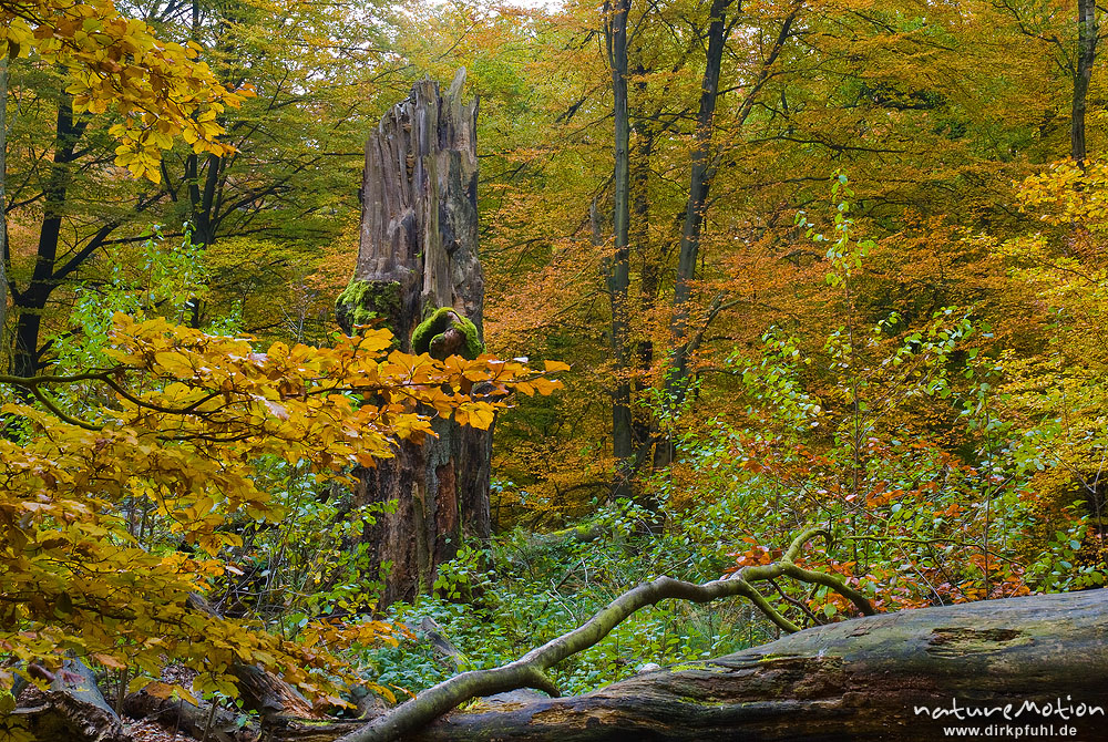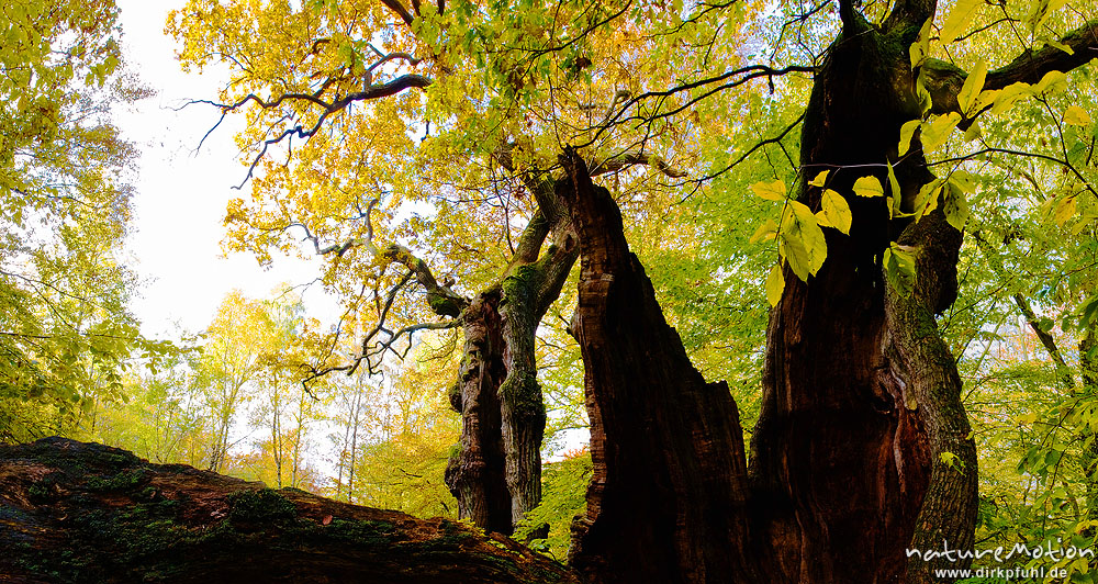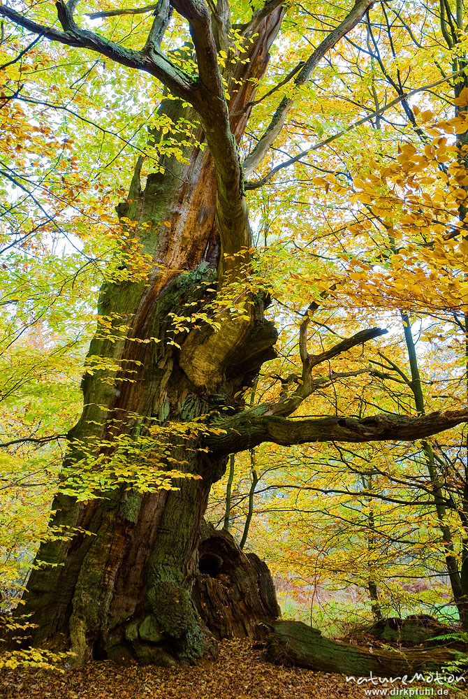 Buchenwald mit Herbstfärbung, ehemaliger Hutewald, alte Eic ...