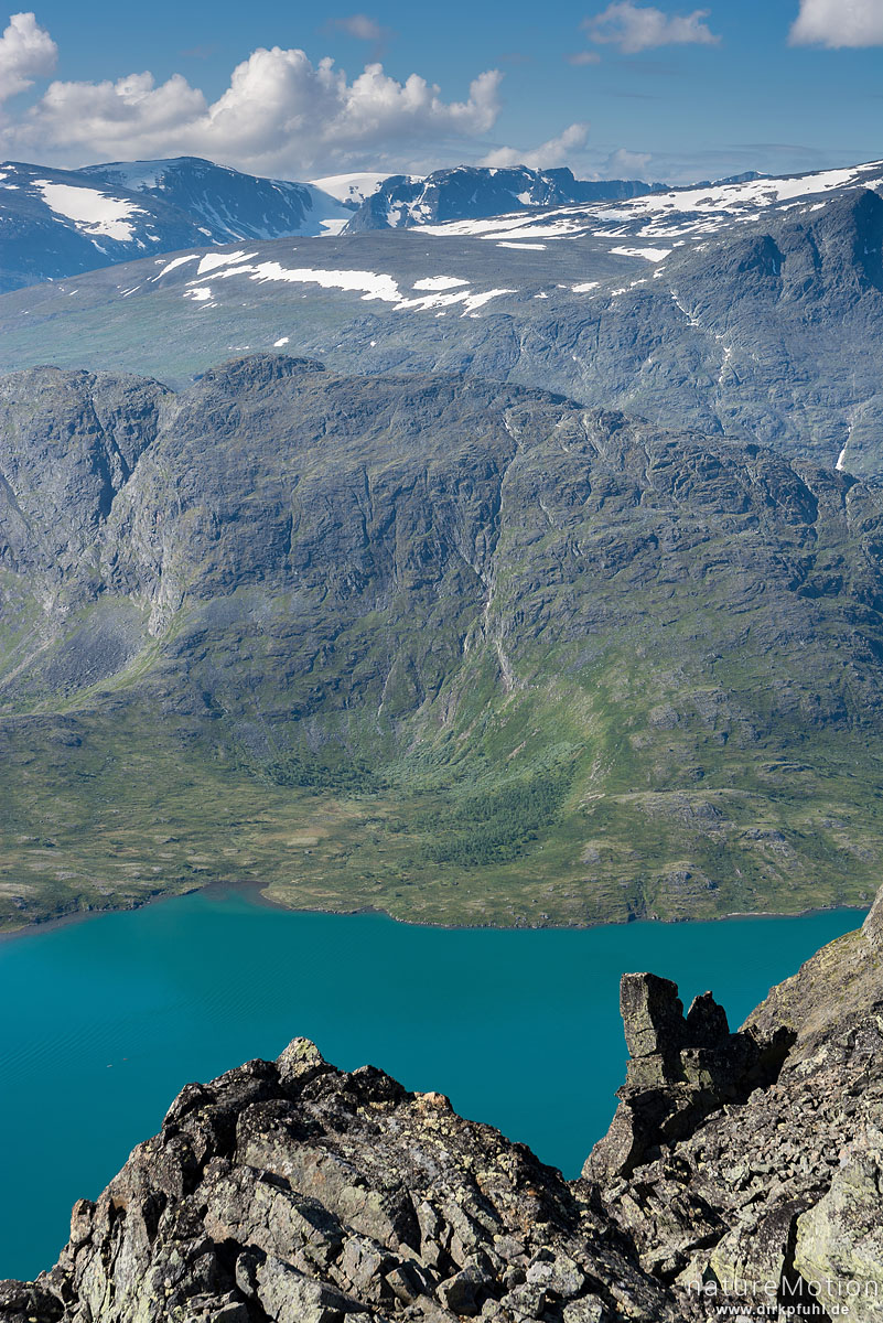 Blick auf Gjendesee und Nedre Leirungen, Wanderweg, Veslfjel ...
