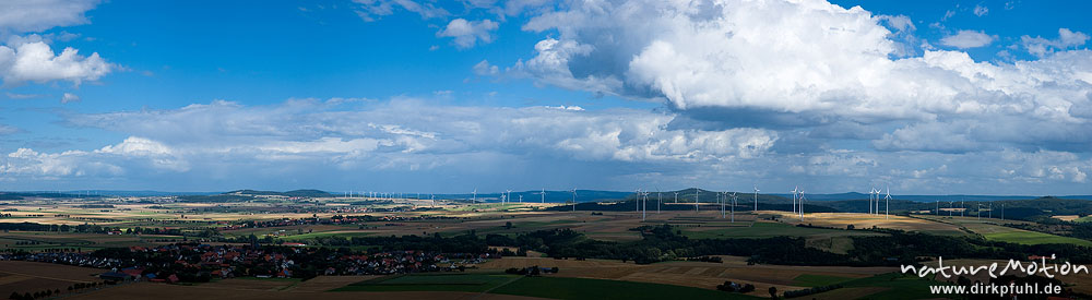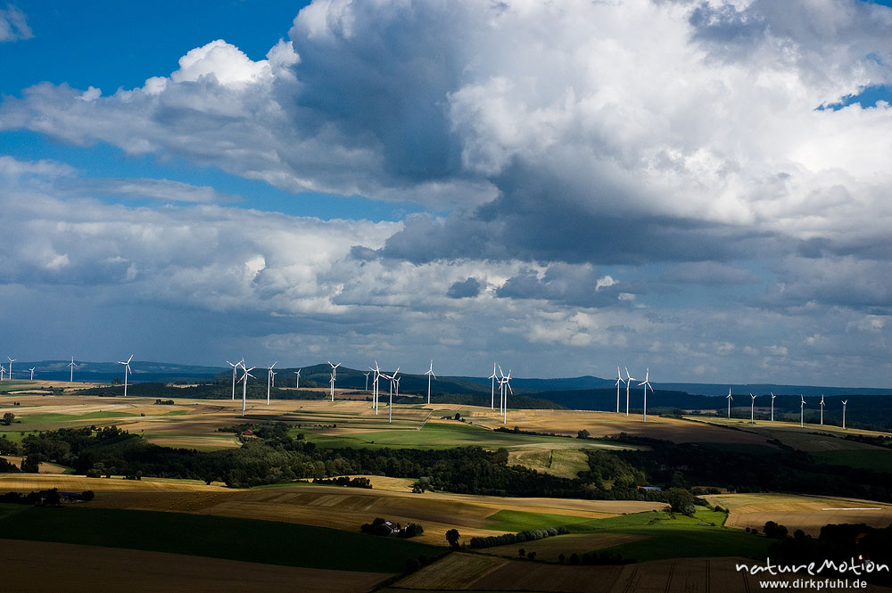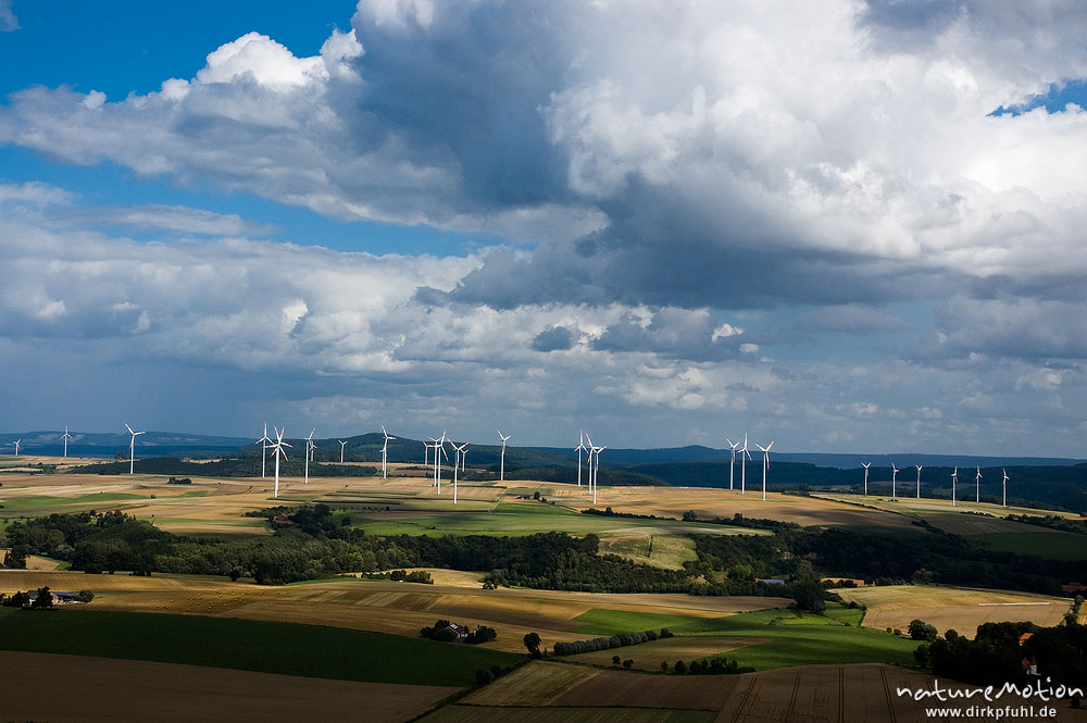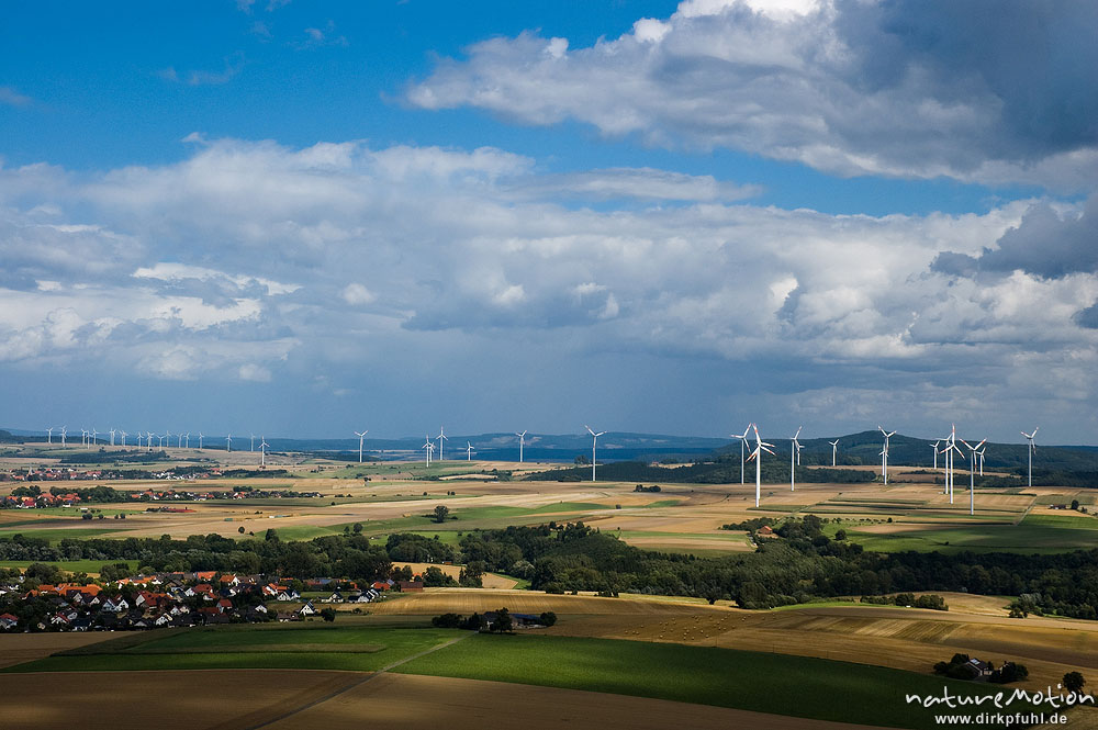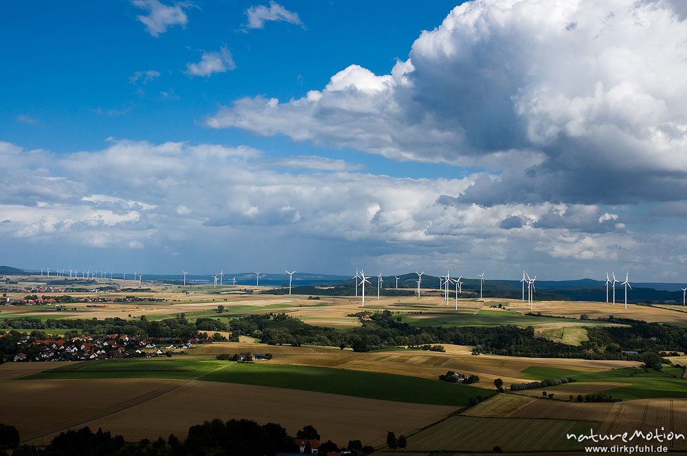Windräder im Morgennebel, Blick von der Burgruine Desenberg ...