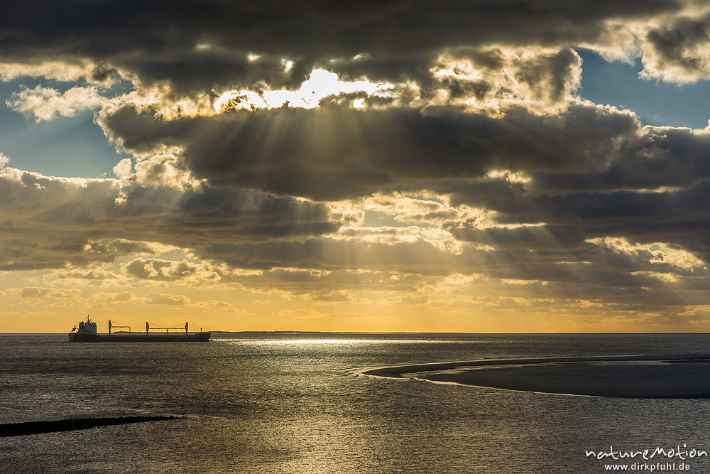 vorbeifahrendes Schiff, Sonnenuntergang über dem Meer, Hohe ...